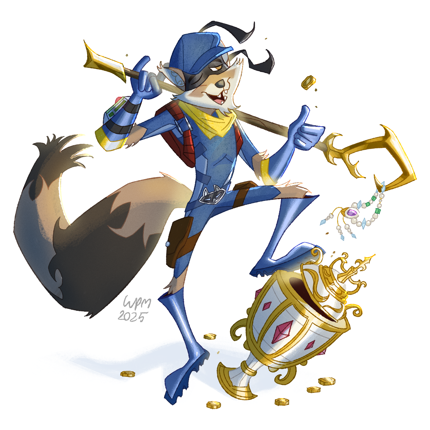Original design and interpretation of Sony's iconic 'Sly Cooper'. I imagine a reboot of the series where we meet Sly and the Cooper Gang as younger and more unestablished versions of themselves, with only one or two successful heists under their belt. I envision this version of the story taking place in a fictionalised and cartoony but still technologically-modern Paris.