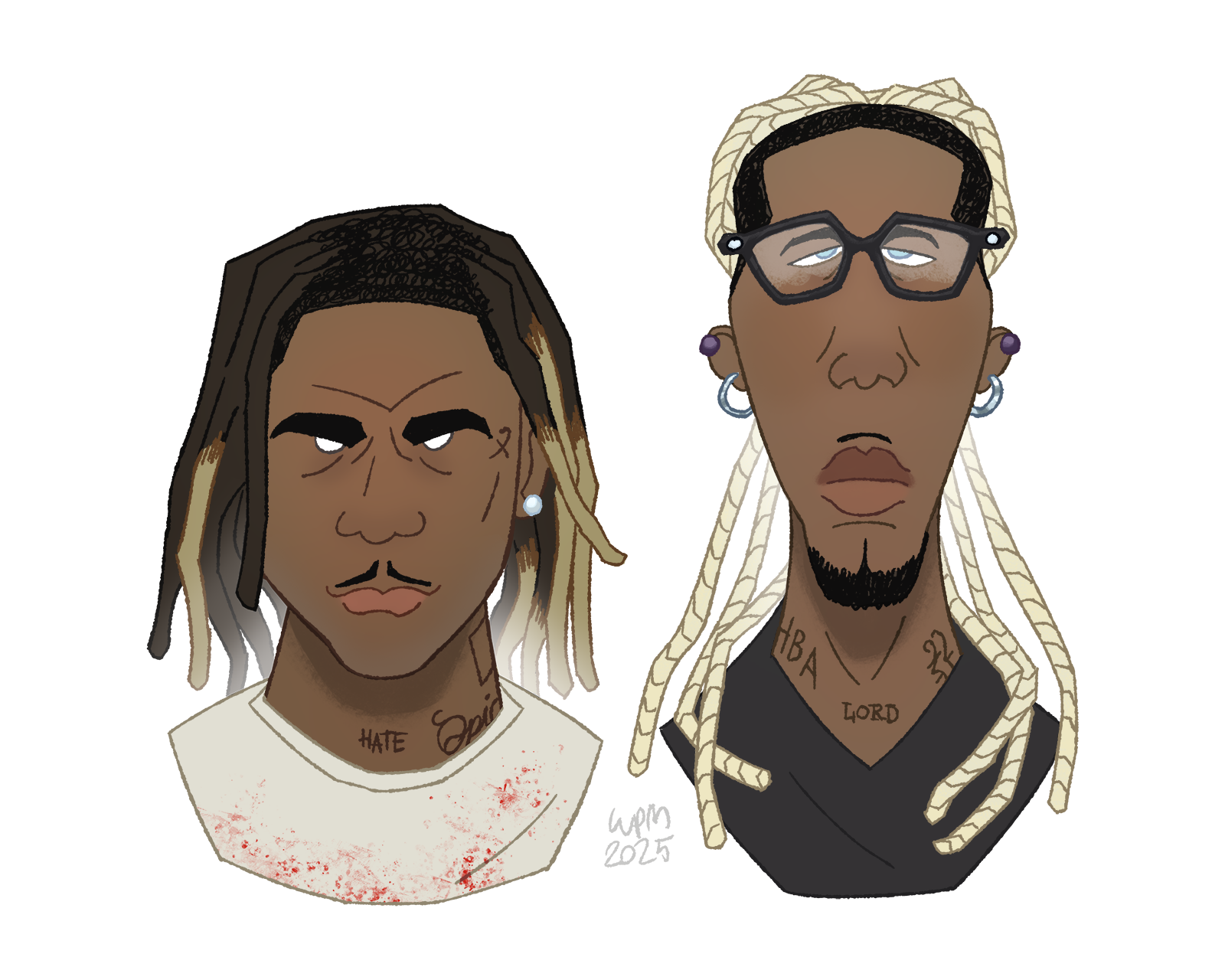 Caricatures/character designs based off rappers Ken Carson and Destroy Lonely.